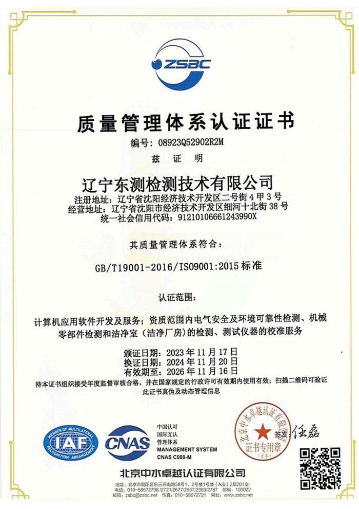 遼寧東測檢測技術(shù)有限公司成立于2007年6月21日,專注于為客戶提供計量、檢測以及技術(shù)咨詢與培訓(xùn)的第三方計量檢測機(jī)構(gòu)。遼寧東測檢測技術(shù)有限公司通過了中國合格評定國家認(rèn)可委員會認(rèn)可(CNAS),獲得檢驗檢測機(jī)構(gòu)資質(zhì)認(rèn)定(CMA),憑借著高效的服務(wù)網(wǎng)絡(luò)、雄厚的技術(shù)實力以及全面的業(yè)務(wù)范圍,本著“科學(xué)、公正、準(zhǔn)確、真誠”的質(zhì)量方針,為社會提供優(yōu)質(zhì)計量檢測服務(wù),打造國內(nèi)具有價值的計量技術(shù)機(jī)構(gòu)。